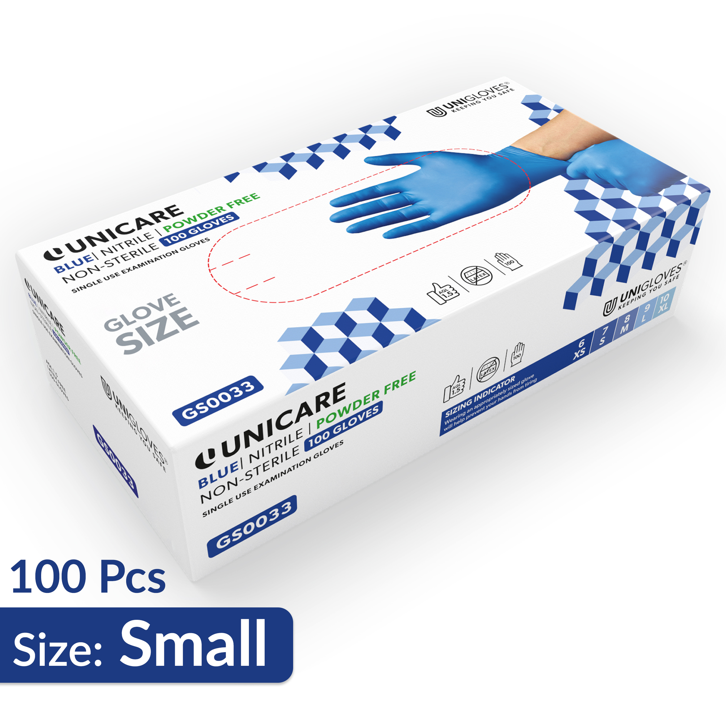 Unigloves Unicare Blue Nitrile Gloves (100 Gloves) – Size Small