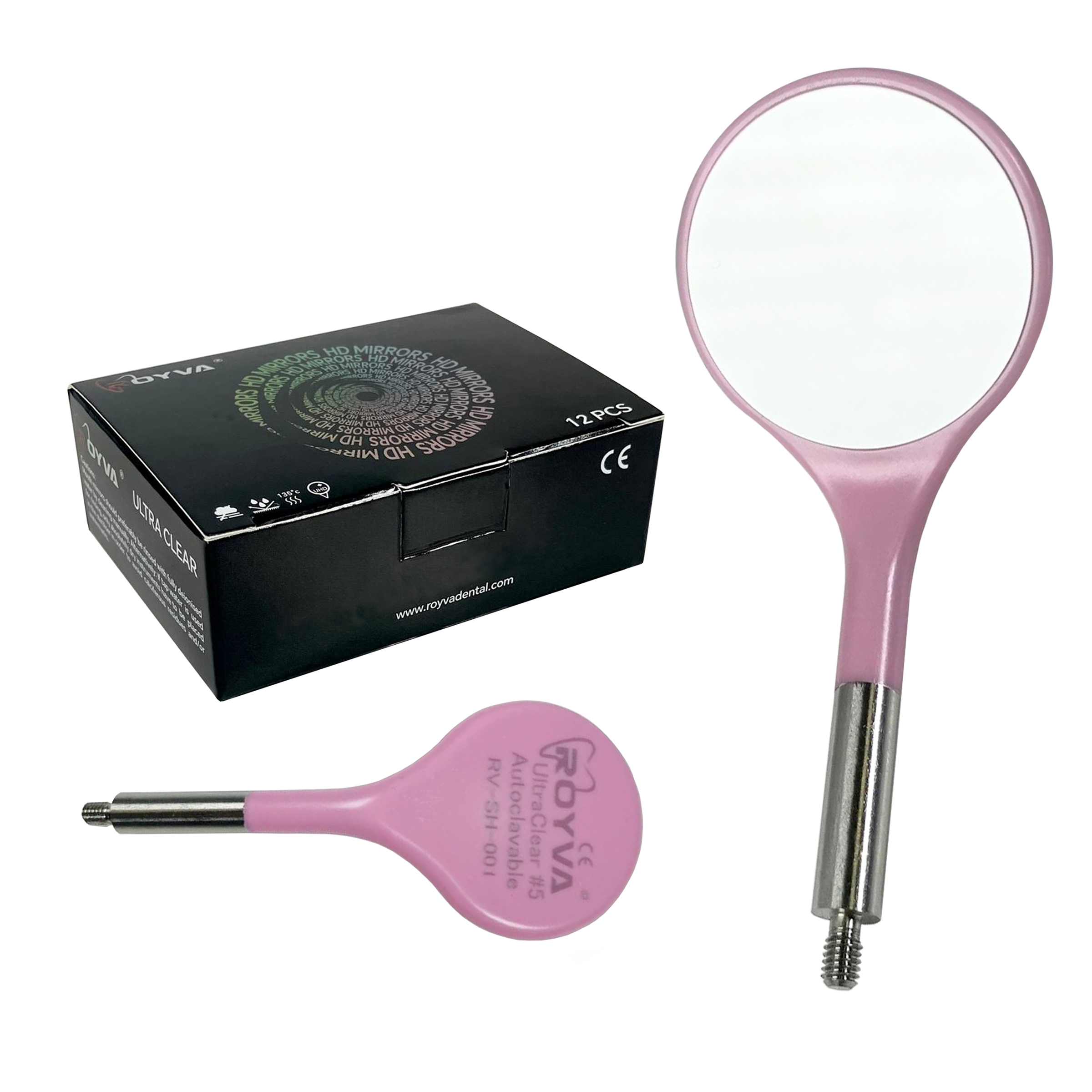 12pcs Royva Ultra Clear Dental Mirror Heads – Pink Size #5
