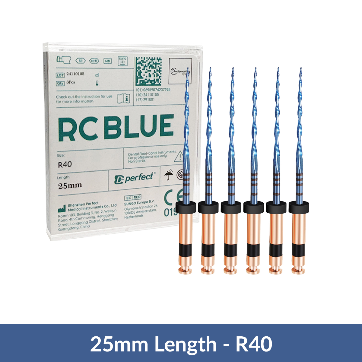 The RC Gold system has a more rigid structure compared with the Blue system. the Blue edition material allows for increased flexibility and provides the user the option for pre-shaping the file before RCT.