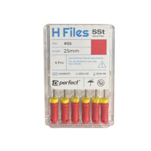 H Files (Hedstrom Files) for root canal procedures. These stainless steel H Files can be used for enlarging root canals, debriding, retreatments and removal of filling material from the canal. With an ergonomic handle, ISO colour coding, Length indication and Rubber stopper on all sizes.