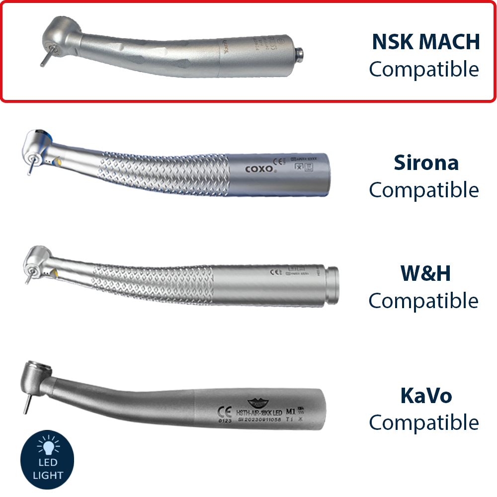 NSK Mach Compatible Fitting, tailed handpiece which connects to an Optic NSK MACH Type Coupling.