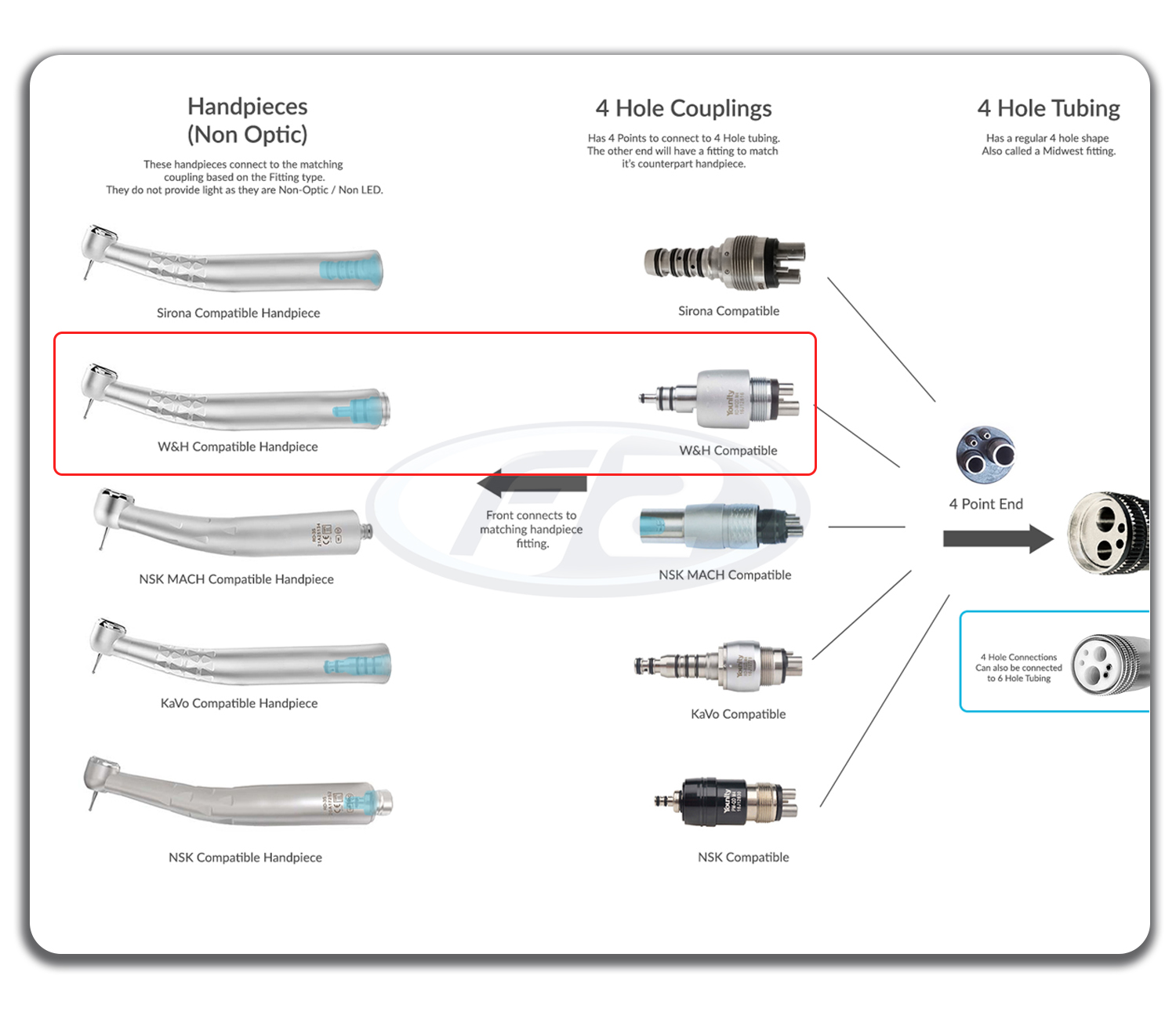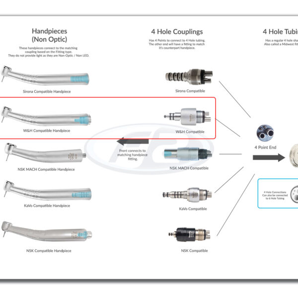 High Speed (Fast) Handpiece at 1:1 Ratio, compatible with W&H Type Couplings.