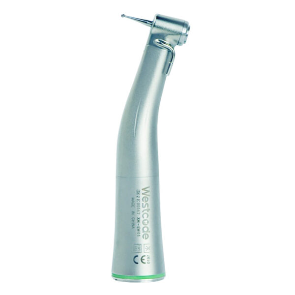 Reduces speed output by 20. With push button head for quick bur replacement and direct water outlet below bur for effective cooling spray when necessary. Provides internal and external cooling. Water supplied via external pipe. Small handpiece head for optimal view and reach.